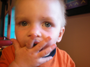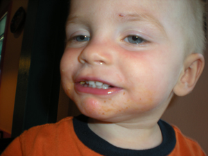 Bryson eating dinner tonight..mac & Cheese